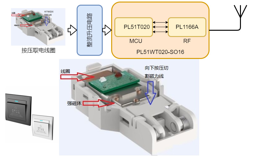 1、方案采用PL51WT020芯片,具有高稳定性,低功耗等特征;